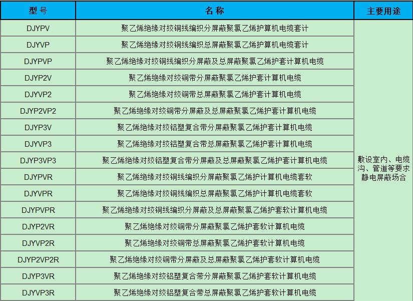 本產(chǎn)品適用于額定電壓500V及以下對于防干擾性要求較高的電子計算機和自動化連接用電纜。